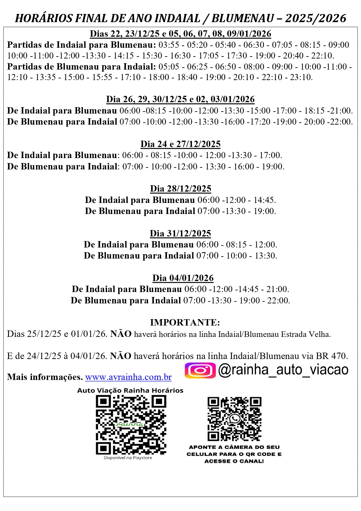 A Auto Viação Rainha deseja a todos os seus passageiros um Feliz Natal e um próspero Ano Novo! Informamos que os horários dos nossos ônibus para o período de fim de ano já estão disponíveis. Boas festas!